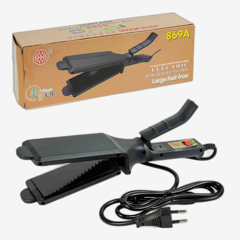 - Выпрямитель для волос электрический 869A — описание и характеристики Выпрямитель для волос длиной 27 см и шириной 6 см оснащён широкими пластинами по 5 см, что позволяет быстрее выравнивать даже густые и длинные волосы. Длина ручки — 10 см, шнур — 160 см. Мощность 30–35 Вт, питание от сети 220 В. Те...