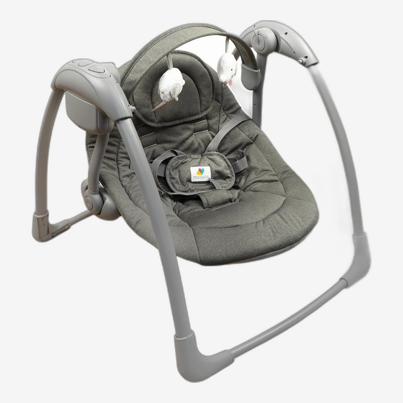 Детский убаюкивающий центр, 3–11 кг, 5 скоростей качания, 7 мелодий, вибрация (Mastela 6599) серый